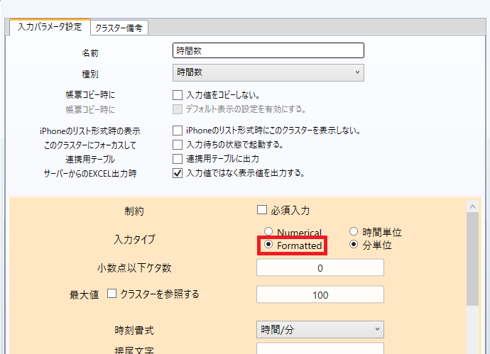 なお、休憩時間や中断時間の入力に時間数クラスターの入力タイプ「Formatted」を使えば、入力した時間はシリアル値として扱われるため、シリアル値への変換が不要になります。