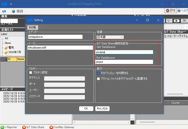 - 「IoT Data Share 接続先設定」にて gateway\config\datasources