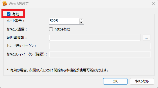 IoT Data Share のWebAPI設定画面で、「有効」にチェックされているか確認してください。チェックされていない場合、エラーが発生します。