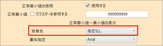 「正常最小値~最小値の表示」/「正常最大値~最大値の表示」>「背景色:指定なし」